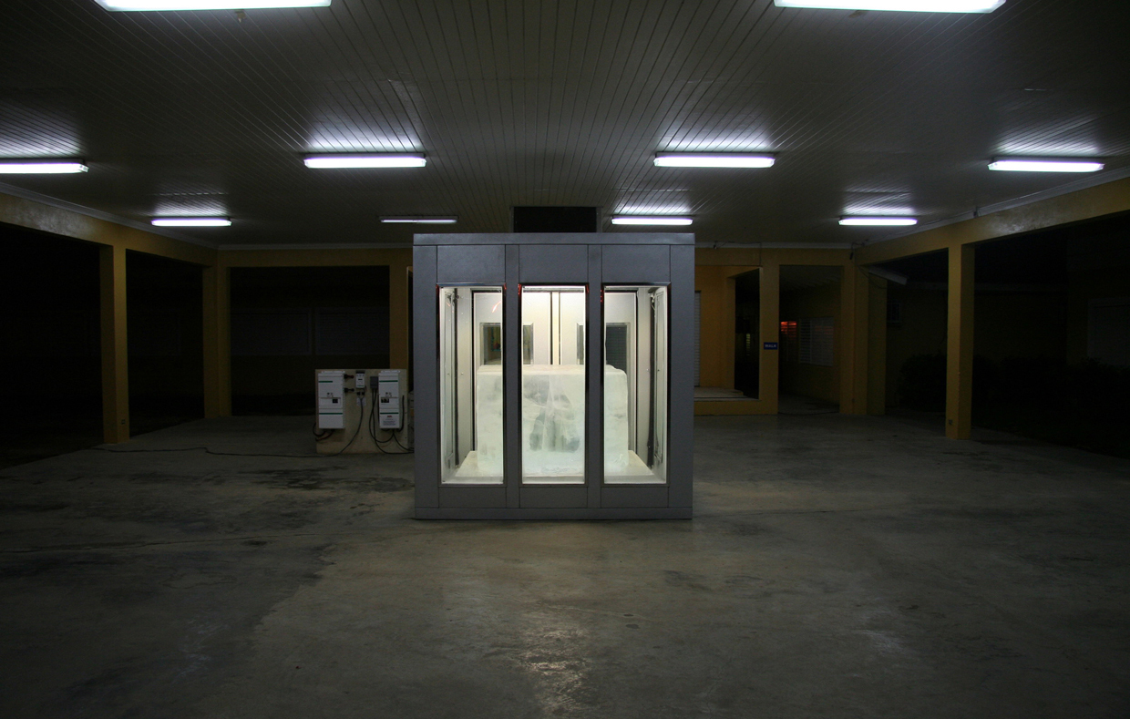 In 2005, he journeyed to the Alaskan Arctic, extracted a two-and-a-half-ton piece of ice from a frozen river (with some help), and shipped it to the Bahamas, his birthplace. There, in the tropical summer heat, the ice was kept intact in a specially designed solar-powered freezer and exhibited under the title The Distance Between What We Have and What We Want. This early piece remains one of his most widely recognised works. It is a poetic, almost surreal juxtaposition—ice in the tropics, powered paradoxically by the sun—alluding partly to his own childhood inability to comprehend snow and ice, growing up on an island where such experiences were out of reach. This work also reflects on the interdependence of extremes: geographical and climatic, social and economic, racial and cultural.