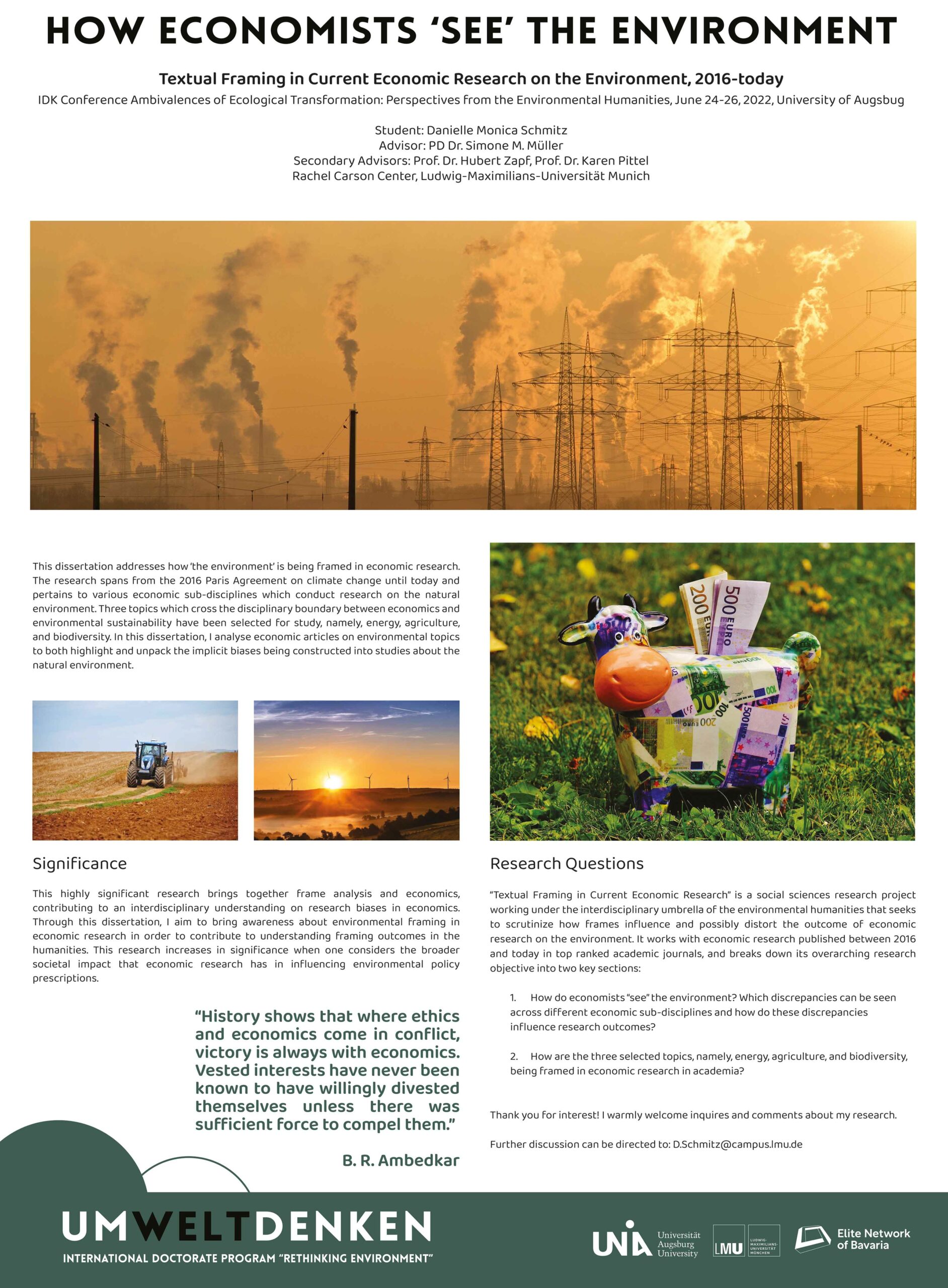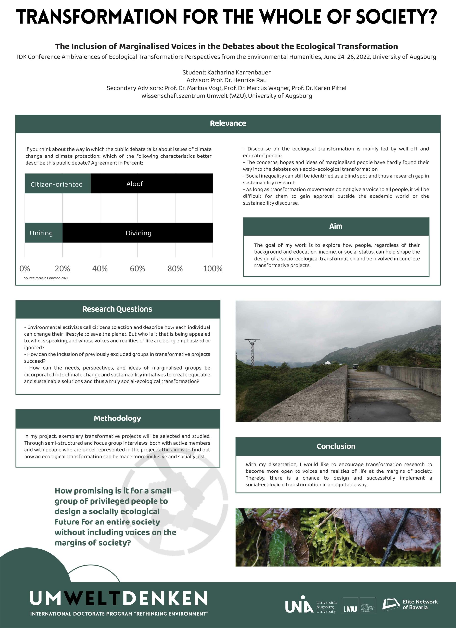 The IDK Conference “Ambivalences of Ecological Transformation” took place on June 24-26, 2022 at the University of Augsburg and featured the exhibition of research posters of our PhD students. Scroll down to know more about the doctoral projects.