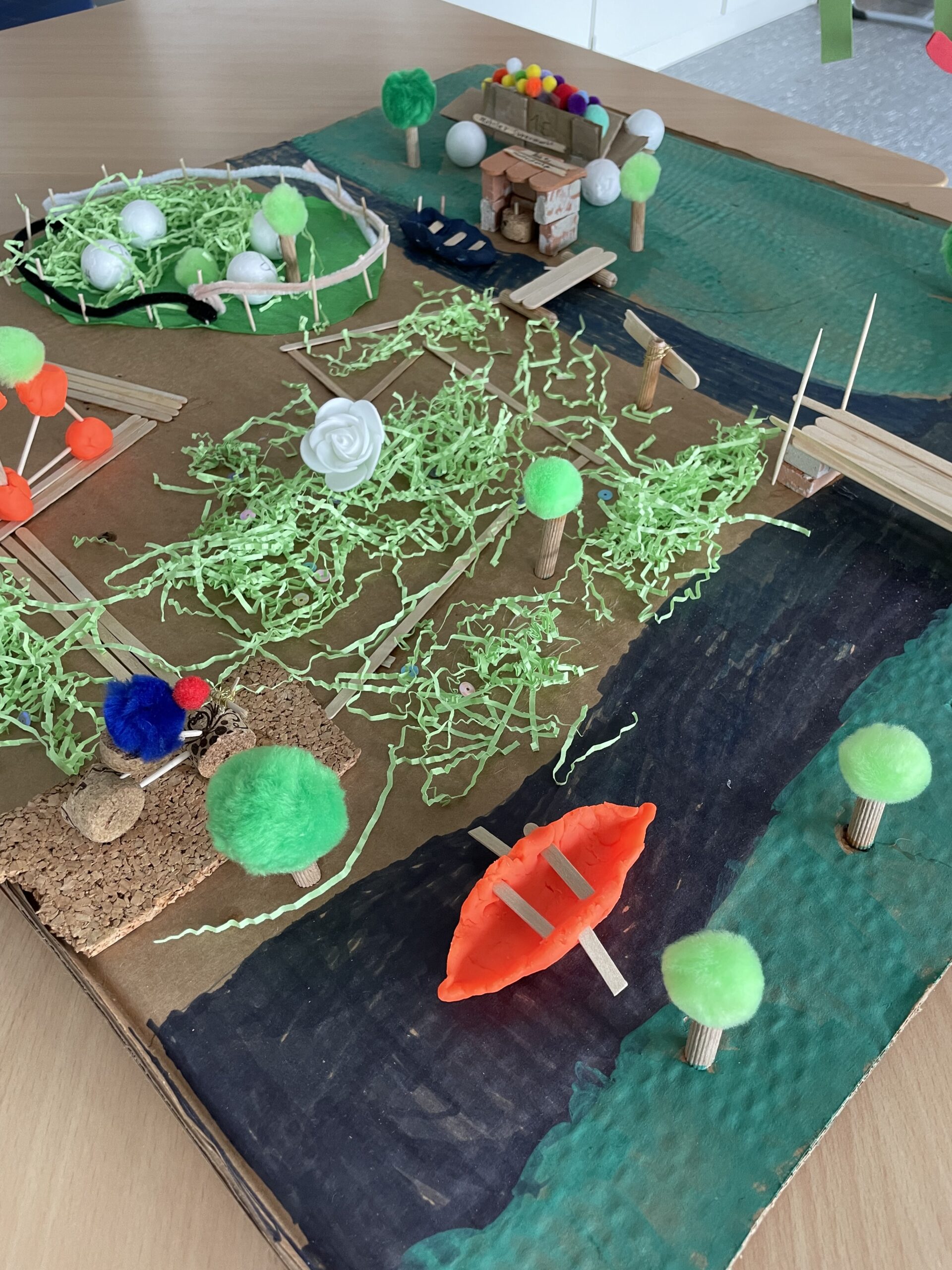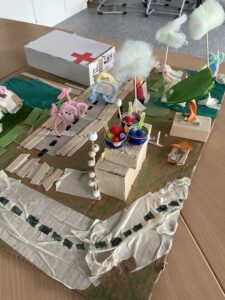 During two intensive project days, the children explored how mobility could be shaped in the future to meet everyone’s needs. They developed creative models that viewed mobility as an integral part of liveable public spaces, enabling social participation. These models ranged from highly imaginative to more pragmatic conceptions. The ideas included creating a sustainable forest village alongside the River Lech, transforming historic Kaufering into a ‘Venice on the Lech’, designing a school area that is completely car-free, building a multifunctional, solar-powered railway station, and a sports ground that generates electricity through skating. They also planned a green Fuggerplatz, located in the middle of Kaufering, that is designed to be a ’15-minute place’ with short distances for all generations.