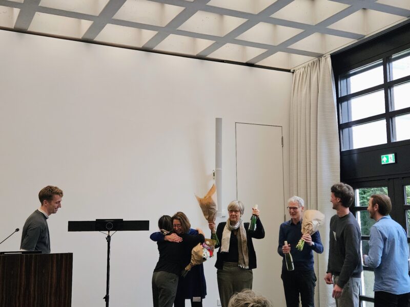 What a nice surprise! PhD students from the first cohort presented IDK speakers Matthias Schmidt and Simone Müller as well as coordinator Kirsten Twelbeck with beautiful bouquets of flowers and a bottle of wine from a relative’s vineyard!