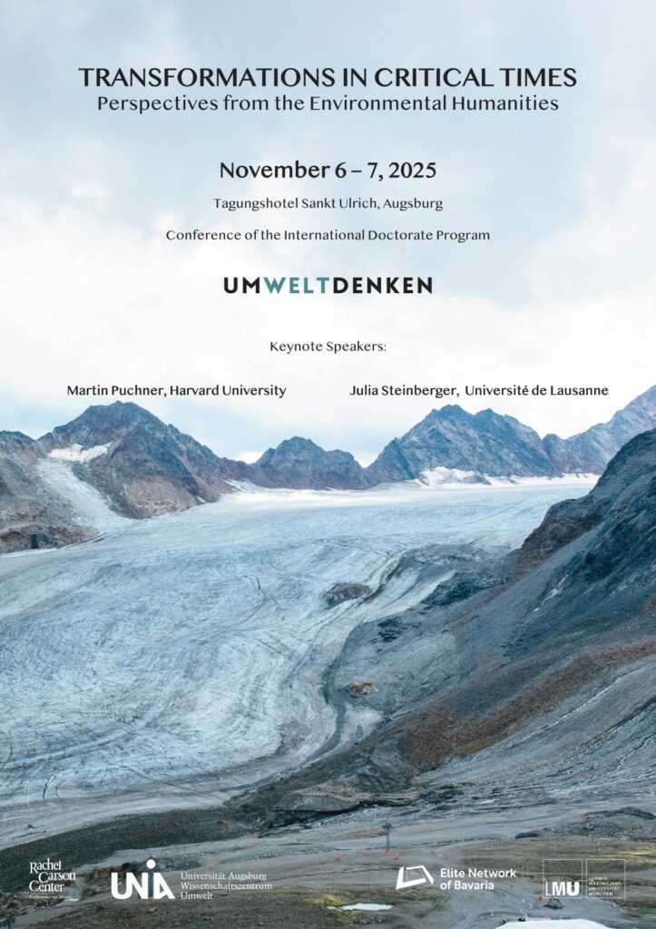 On November 6 and 7, 2025, the ENB-funded International Doctorate Program “Um(Welt)Denken / Rethinking Environment” held its second International Conference, “Transformations in Critical Times. Perspectives from the Environmental Humanities” in the Sankt Ulrich Conference Center in Augsburg. It was the closing event for the first cohort of IDK PhD students (2021-2025) and the happy finale of their long and eventful journeys in the “IDK Rethinking Environment.” For the second cohort it was—so we hope–inspirational entry into an exciting intellectual landscape and an invitation to contribute to it in surprising, inspiring, thought-provoking ways.