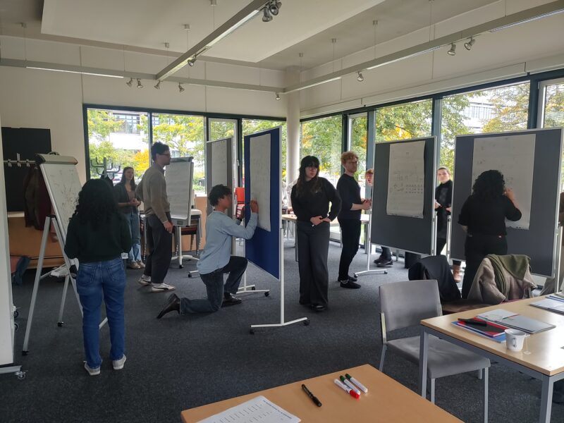 Perhaps the most memorable part of the kick-off was the poster session on day one. PhD students visualized their projects and thereby created an exhibition that allowed for engaged conversations. An important aspect of this activity was the creative engagement with other PhD students project posters: adding a plant where there’s only humans or connecting sky and mountains through a gondola is certainly an interference with another person’s work–but if it’s done in a friendly, attentive, and supportive way it’s interdisciplinarity at its best!